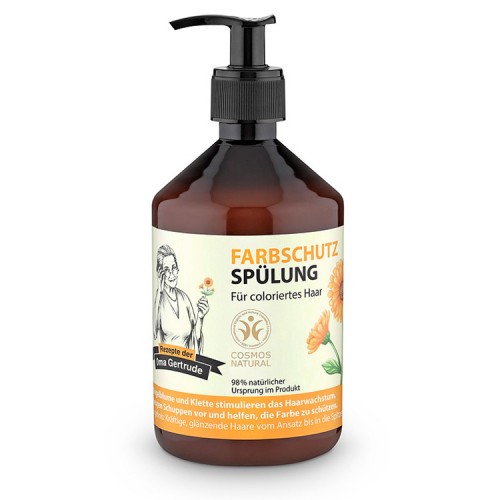金盞花牛蒡固色亮澤護髮素含有98%天然成分,溫柔護理已染色頭髮,有助於保持健康及固色,使梳理容易.有機金盞花提取物富含生物活性成分,由內部滋養開始你的頭髮,保持亮澤顏色.有機牛蒡提取物含有單寧酸,維他命,礦物質,蛋白質,加速頭髮生長,恢復其天然強韌和光澤.